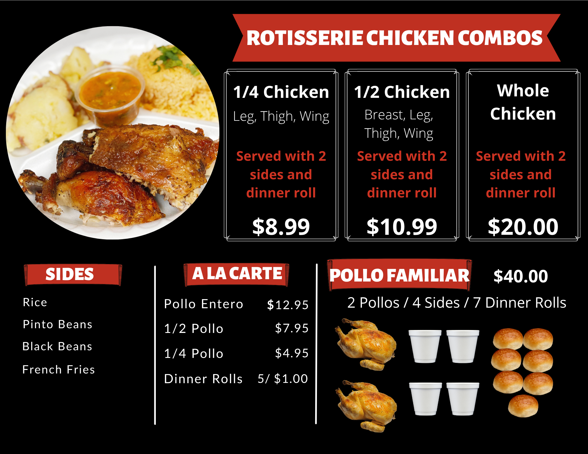 Craving authentic Salvadoran flavors? Our bakery serves up handmade pupusas, tamales, burritos, tortas, and our signature rotisserie chicken. Enjoy a hearty breakfast of huevos rancheros or a breakfast burrito. For lunch, savor traditional Salvadoran dishes like carne guisada, puerco en salsa, mojarra frita, and sopa de gallina. We also make delicious rellenos, including rellenos de chile and rellenos de guisquil. Don't forget our tortas, including torta de jamón and torta de carne asada. And on weekends, treat yourself to a Salvadoran favorite—pan con pollo!